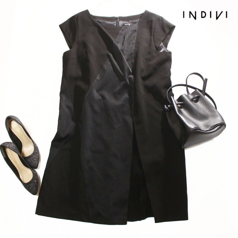 - 美品 インディヴィ INDIVI ワンピース エレガント 大きいサイズ48 フォーマル ワンピース 19号 ブラック 黒 デザイン