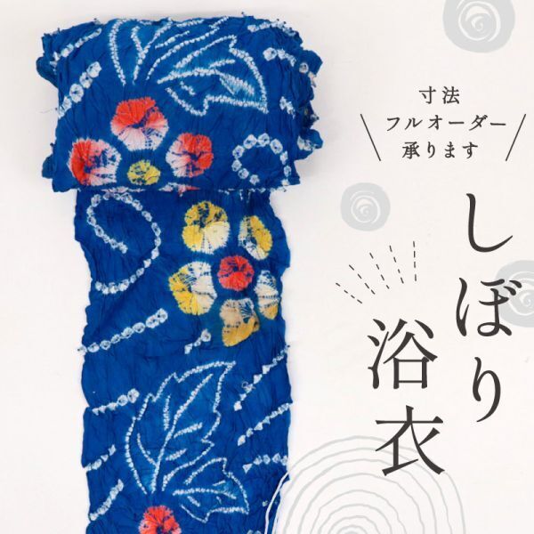 - 【反物】 浴衣 手しぼり 鮮やか花唐草模様 青ブルー 木綿 夏着物 お仕立て可 反24-105