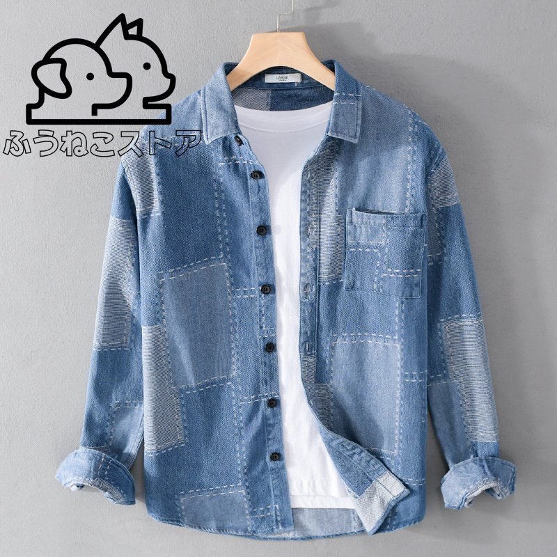 - 新作メンズシャツ 長袖シャツ デニムシャツ カジュアルシャツ ウエスタンシャツ ワークシャツ トップス 色*サイズ選択可 ブルー M-3XL