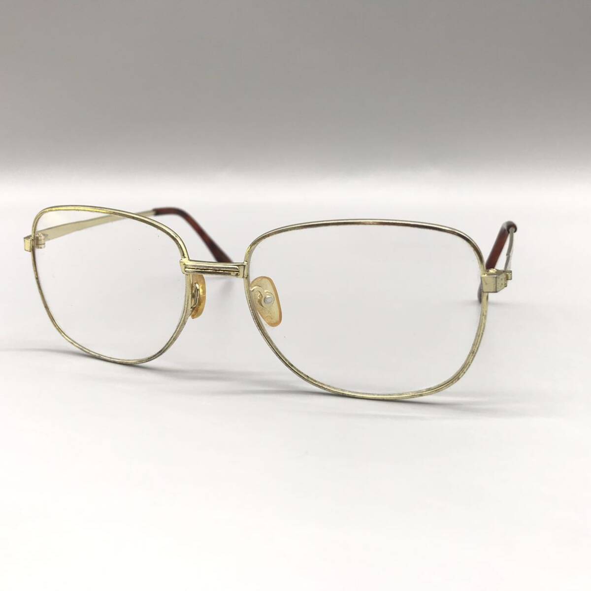 > [送料全国一律360円] ヴィンテージ メガネ 眼鏡 メタル 金属 フレーム フルリム レンズ 度入り ウェリントン ゴールド べっ甲柄 55□16-135