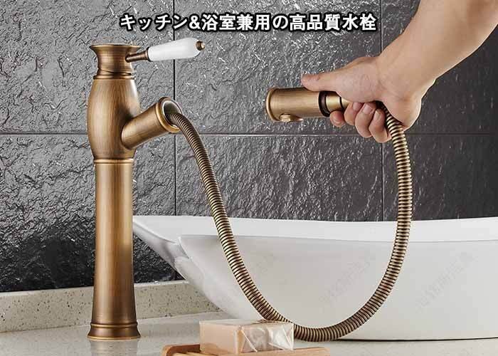 - 蛇口 キッチン水栓 浴室水栓 混合水栓 ワンホール ハンドシャワー シングルレバー 伸縮ノズル 首回る キッチンシャワー水栓 本体真鍮