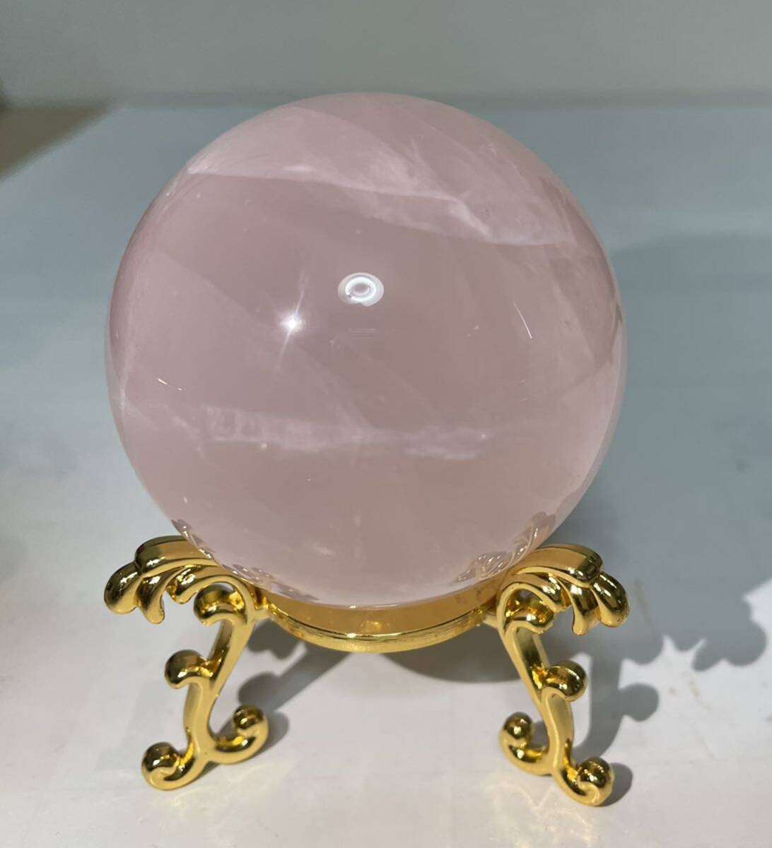 - 虹入ピンククォーツ 010 ローズクォーツ 水晶 クリスタル パワーストーン 浄化 天然石スフィア 丸玉 置物 風水晶 幸運 恋愛運