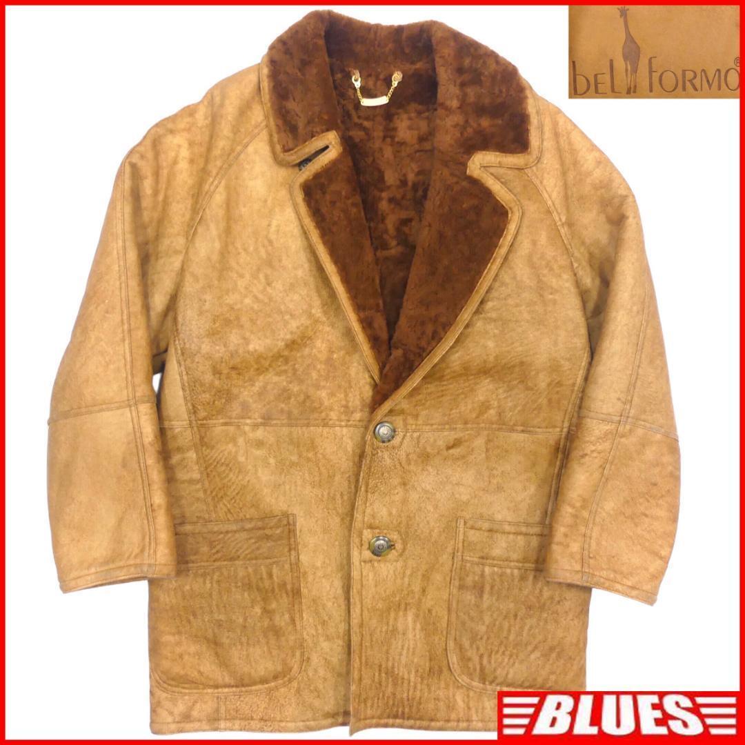 > 即決★bel formo★メンズM ムートンコート ベルフォーマー 95 茶 キャメル 本革 シープスキン 皮 レザー ジャケット 羊革 ラム 検索:B3