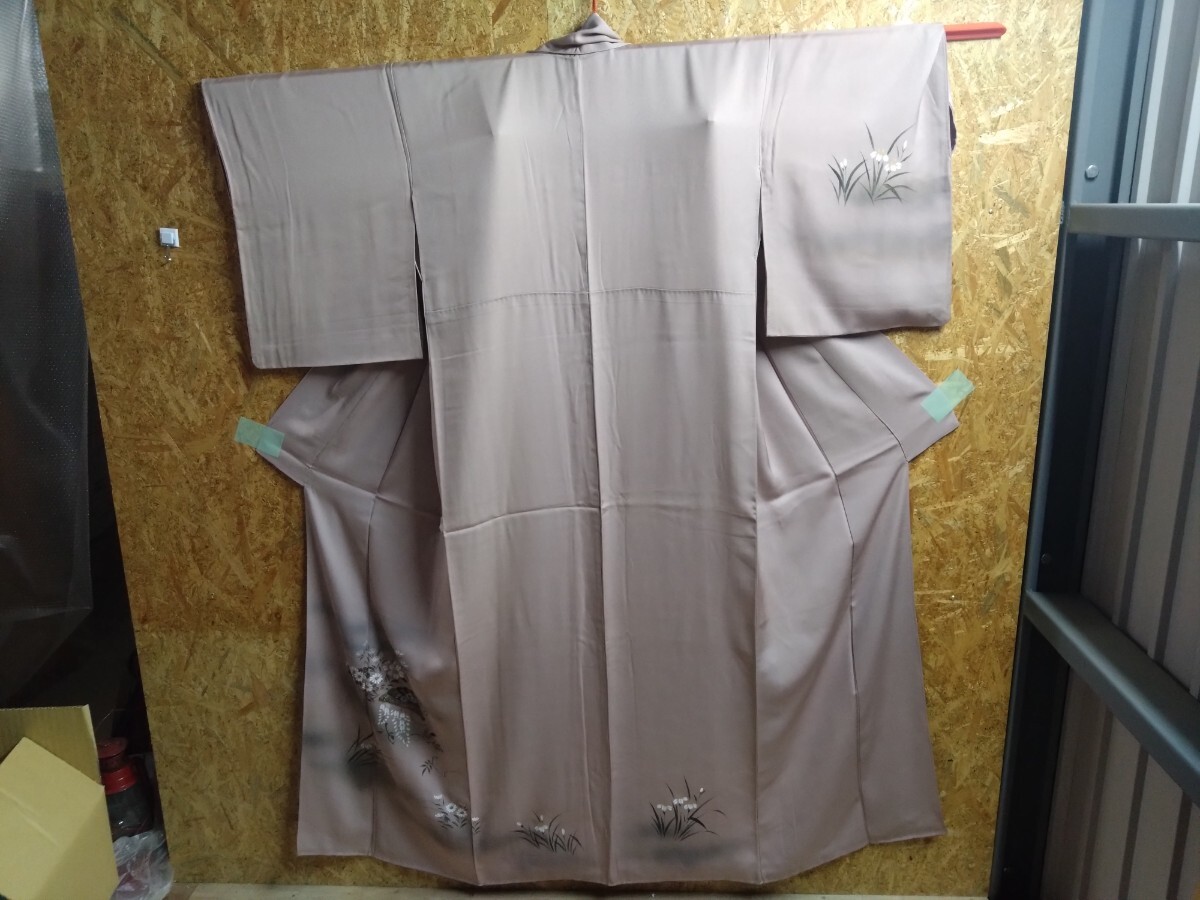 - ●12 白 水仙 野菊 くすみカラー ピンク/紫系 金彩 正絹 着物 清楚 大和撫子 花模様 入学 卒業 結婚式 お宮参 七五三 美しい 訪問着 美品③
