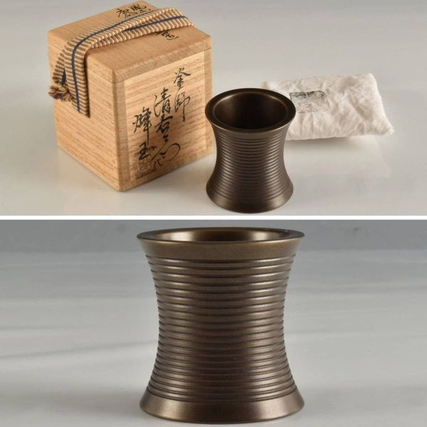 - C08094 大西清右衛門 鵬雲斎好唐銅糸目蓋置:真作