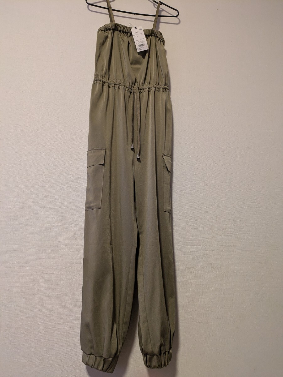 - 未使用/ナノ・ユニバース吉川ひなのコラボベアオールインワンサロペット カーキ 38M nano ベアトップワークジョガーパンツ サテン