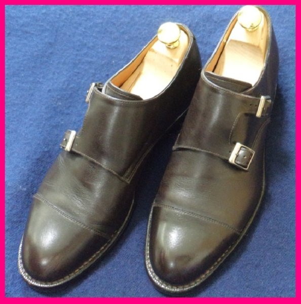 > 【美品】★吉田スーツ 靴 オーダー シューズ:24.5cm★日本製 革靴 ダークブラウン:濃茶色系:TUFF ダブル モンク お得橋本