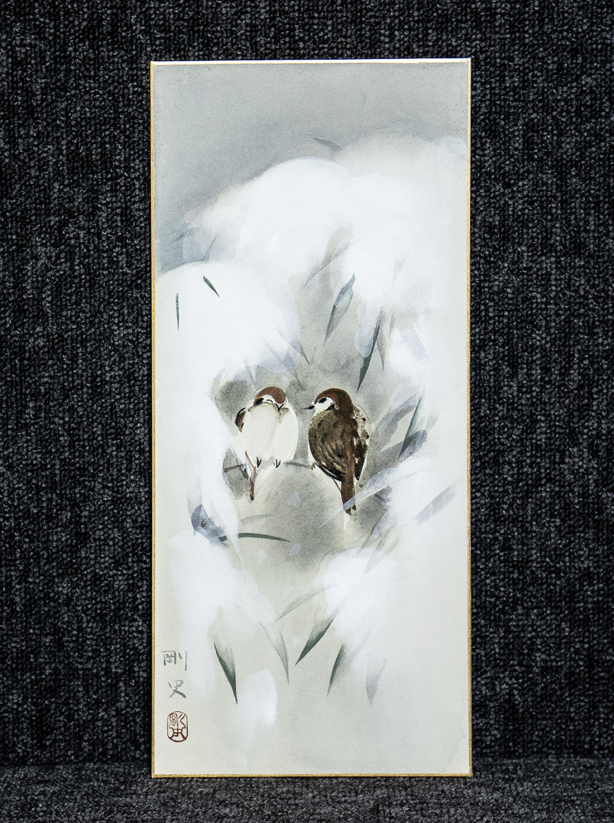 - 【真作】 飯尾剛史 雪もちの竹 小林古径に師事 現代日本画 四季大短冊
