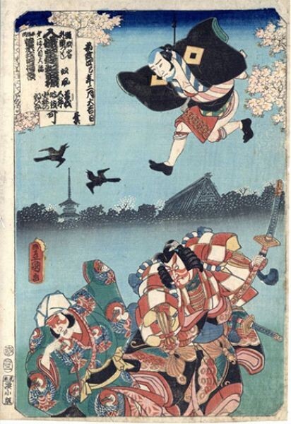 - 豊国三代浮世絵「踊形容外題尽 入船曽我和取?第一ばん」 木版画 約36×24.5 Toyokuni III