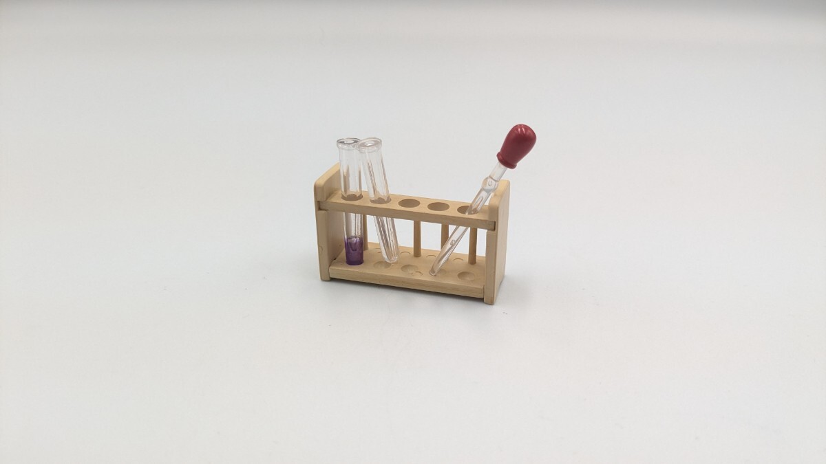 - ミニチュア 木製試験管ラック 試験管 スポイト 実験 リーメント フィギュア 4点セット
