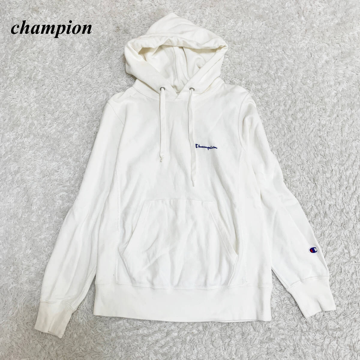 - チャンピオン パーカー M 綿100% ロゴ刺繍 シンプル カジュアル 無地 □