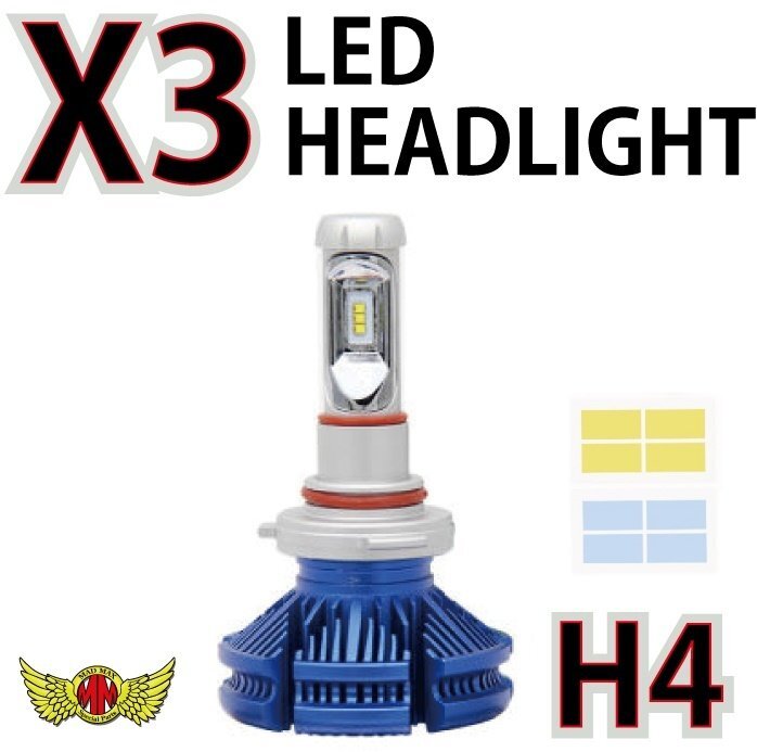 - MADMAX バイク用品 X3 H4 LEDヘッドライト Hi/Lo切替 25W 3000LM 防水 ブルー 1個入り/ZEPHYR ZR-7 ZRX ZX-9R ZX-11 ZX-12R【送料800円】
