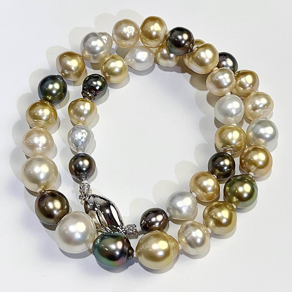 - SV 白蝶 南洋 黒蝶 タヒチ ゴールド ブラック ホワイト パール ネックレス 鑑別書 天然 本真珠 レディース アクセサリー 未使用