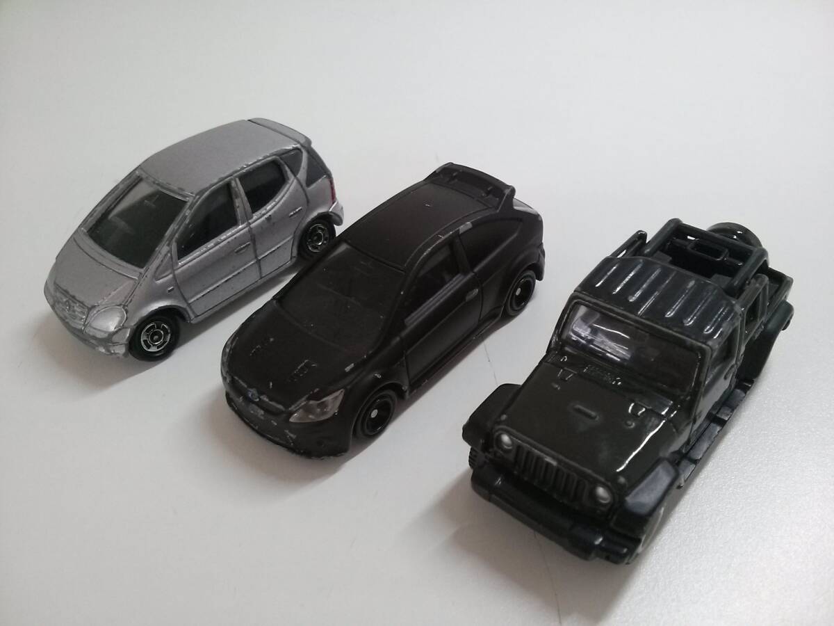 - 【OC-0732】[一部ジャンク品]トミカ 外国車3台セット ジープ ラングラー No.80/フォード フォーカス No.50/メルセデス ベンツ No.107 [KO]