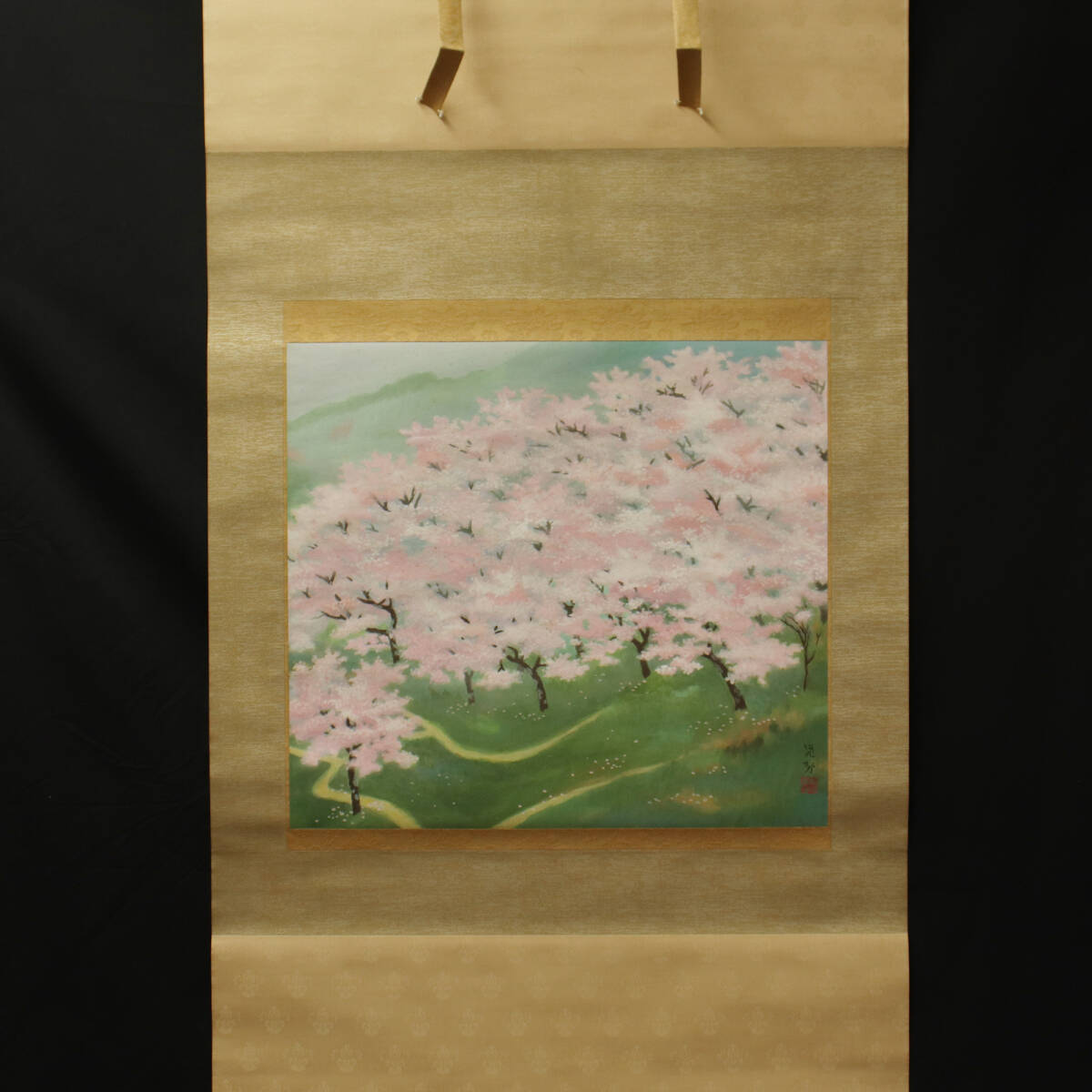 - 【真作】『三輪晁勢』作/絹本 肉筆日本画 “桜の丘” <240903008>