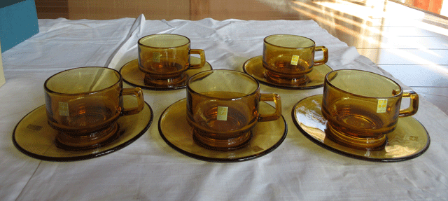 - ☆ガラス工芸品:未使用:☆お洒落なガラスの冷茶セット:ティーセット