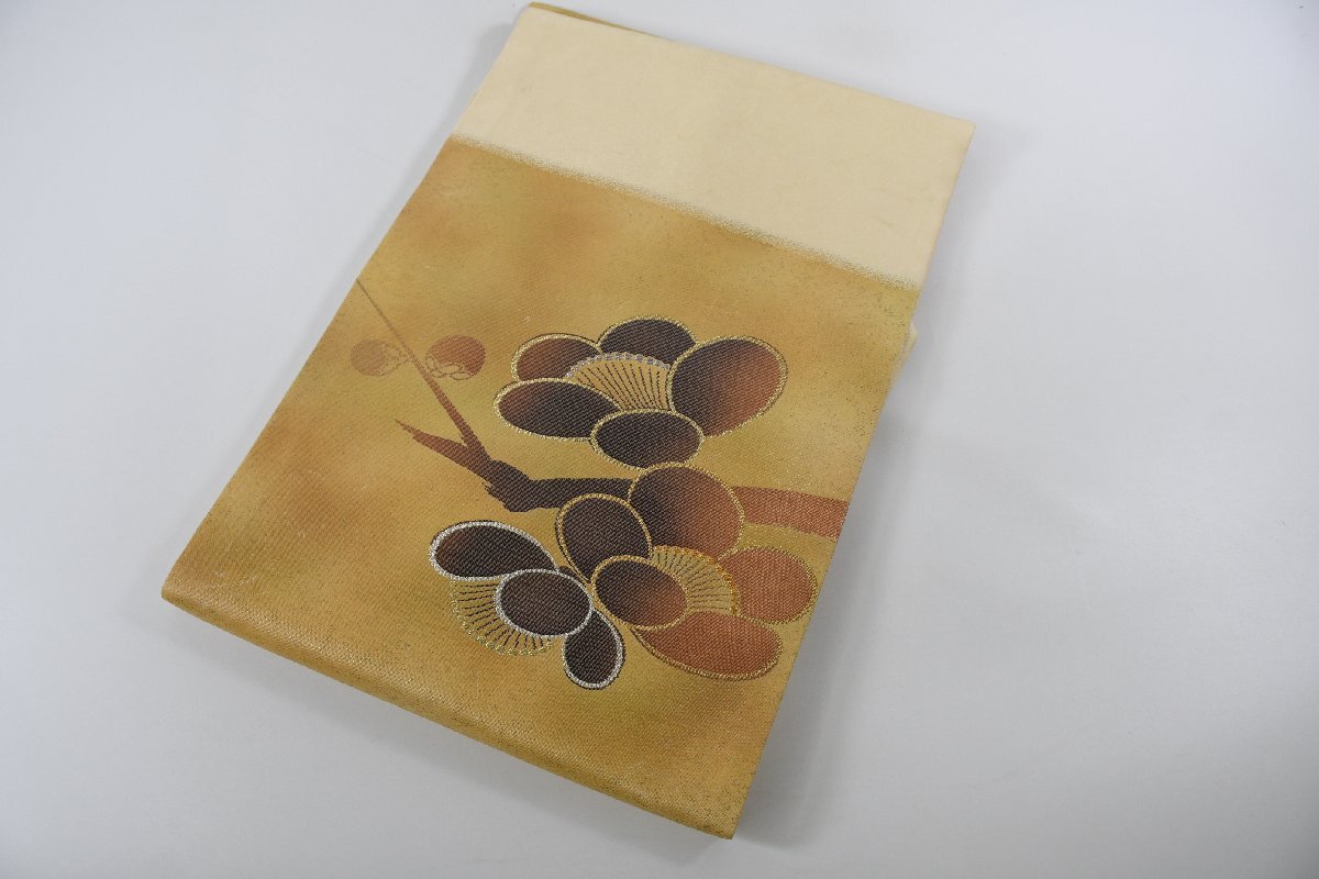 > 名古屋帯 枝に蕾 花 金糸 正絹 帯丈347cm ★着物屋 ne-11608 桜庭呉服店