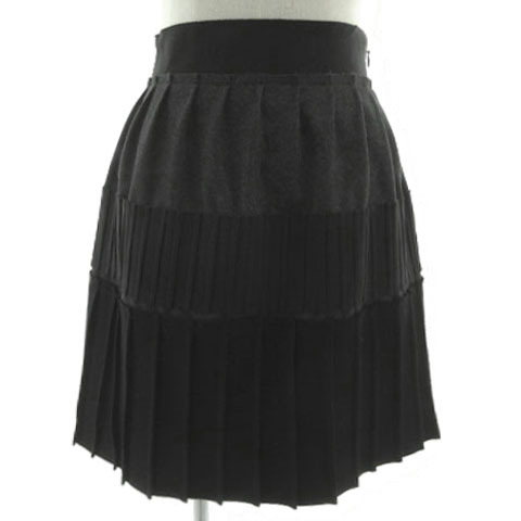 - PHILOSOPHY di ALBERTA FERRETTI スカート 台形 ひざ丈 プリーツ 切替え イタリア製 ウール混 配色 ブラック 黒 グレー I40