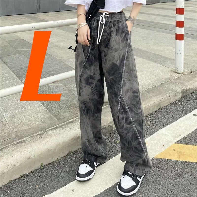 - ワイドパンツ ボトムス タイダイ柄 ルーズパンツ ワイドレッグパンツ グレー パンツ レディース フレアパンツ グレー L