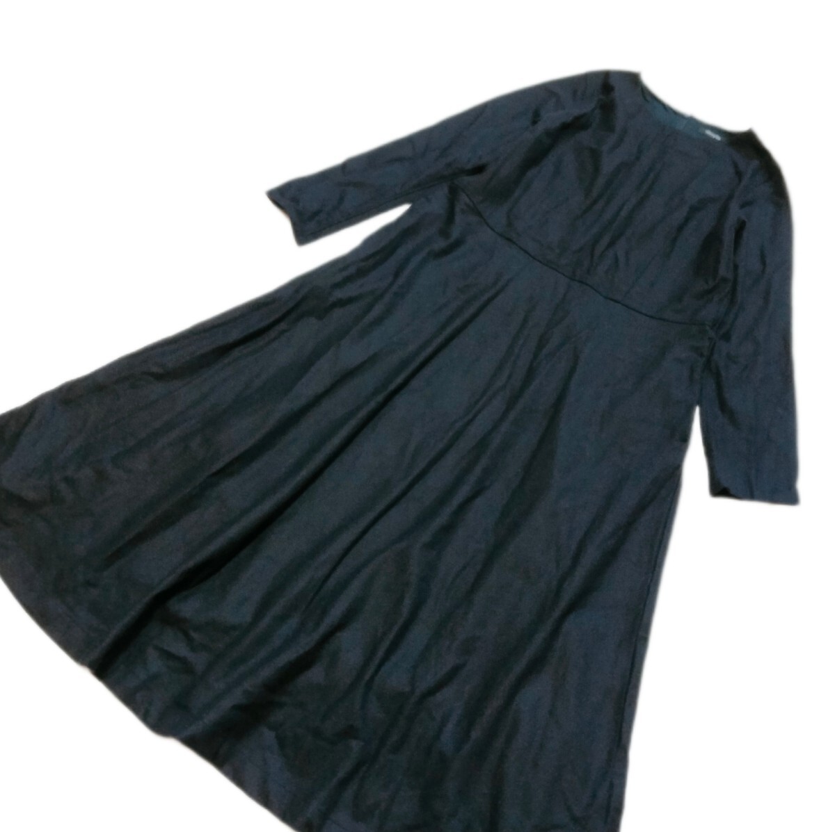 > Sunny clouds サニークラウズ フェリシモ*ロング丈ワンピース*黒*ブラック*長袖*ウエスト切替*シンプル*フレアー*ゆったり*M