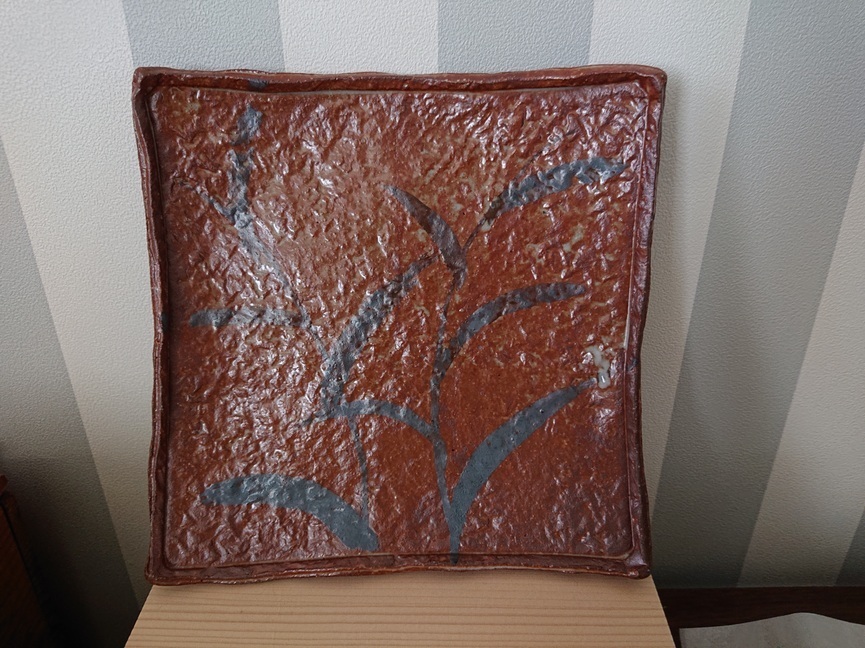 > 本物保証 赤志野(鼠志野)の四方皿。 陶印「ロ」あり。共箱入り 本物返品OK 240906−3