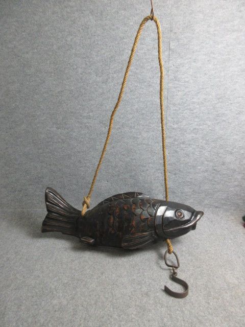 - 【政】33703 木彫鯉自在 鈎 かぎ ひばち 昭和 レトロ 囲炉裏