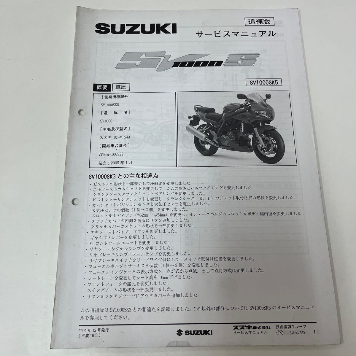 - AB-0041★クリックポスト(全国一律送料185円) SUZUKI スズキ サービスマニュアル 追補版 SV1000S VT54A 2004年12月発行 O-1/①