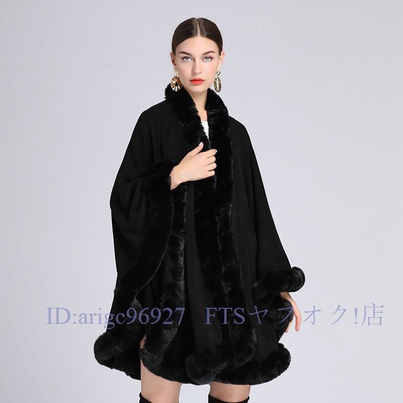 - A6495☆新品冬新品 ふわふわポンチョコート レディース マントコート 上質フェイクファーカシミヤニットカーディガン 黒