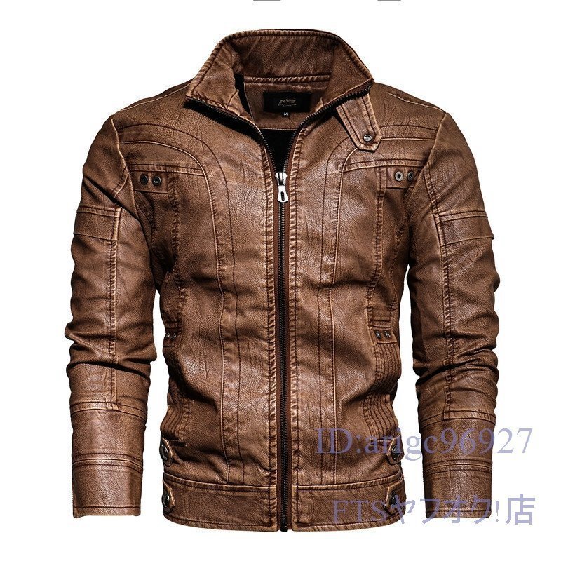 > T879☆新品ライダースジャケット ☆メンズ 裏薄めボア トレンド ステキレザー ブルゾン コート カジュアル バイクウエア【8805】ブラウン L