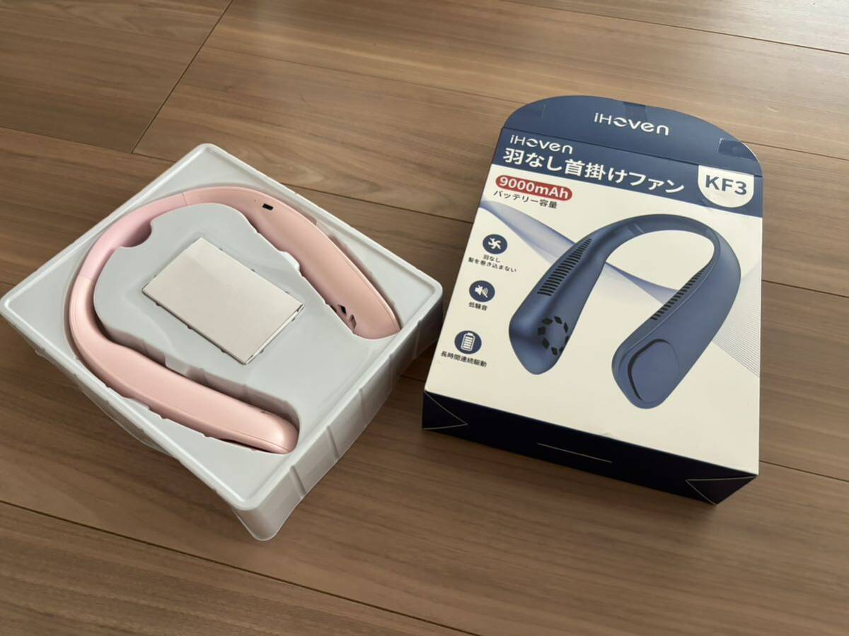 - ★送料無料・未使用★お洒落 肩掛け扇風機 ネッククーラー 羽なし 3段階調整 熱中症対策 ピンク