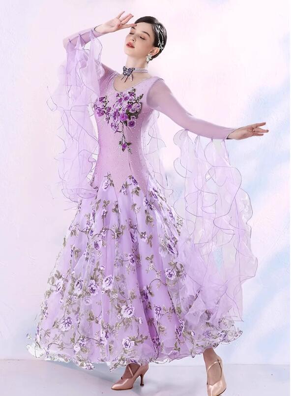 - 新作 レディース社交ダンス衣装 ワルツ社交ダンスドレス モダンドレス 可愛い花柄 サイズ調整対応 3色選択可能 S~3XL