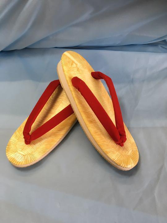 - 婦人草履 巫女さん 赤緒 スポンジ底 黄千葉表 M寸 新品 日本製 0719