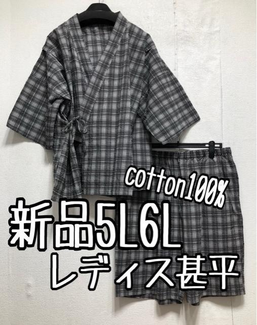 - 新品☆5L6Lモノトーン系チェック柄♪コットン素材おしゃれ甚平☆Q188