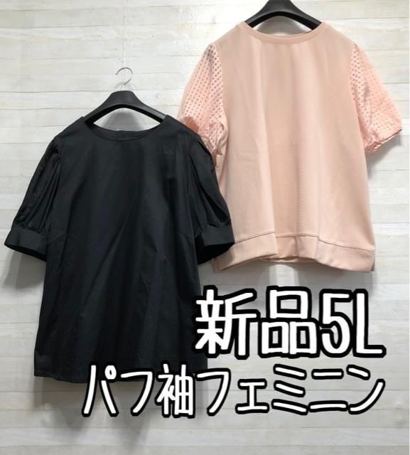 - 新品☆5L♪パフスリーブかわいいトップス2枚セット☆x934