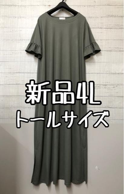 - 新品☆4Lトール♪カーキ系♪フリル袖サラッとマキシ丈ワンピース☆k592