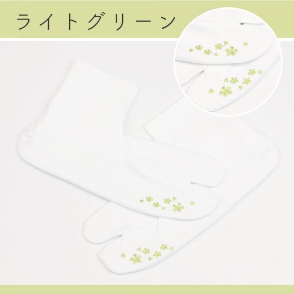 - ▼三作▼送料無料 刺繍足袋 たび桜 ストレッチ足袋カバー たび姫 ライトグリーン