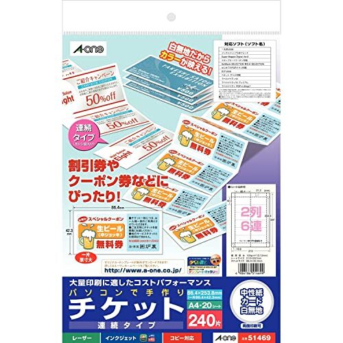 - エーワン 手作りチケット 連続タイプ 2列6連 240枚分 51469
