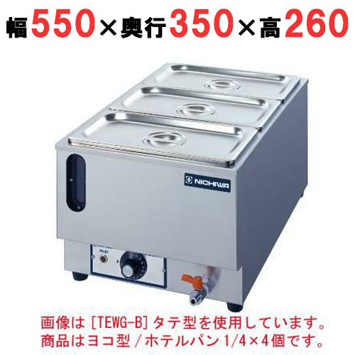 - 電気卓上ウォーマー 水位計付(湯煎式)/ホテルパン1/4×4個 横型幅550×奥行350×高さ260(TEWG-DY)(業務用)