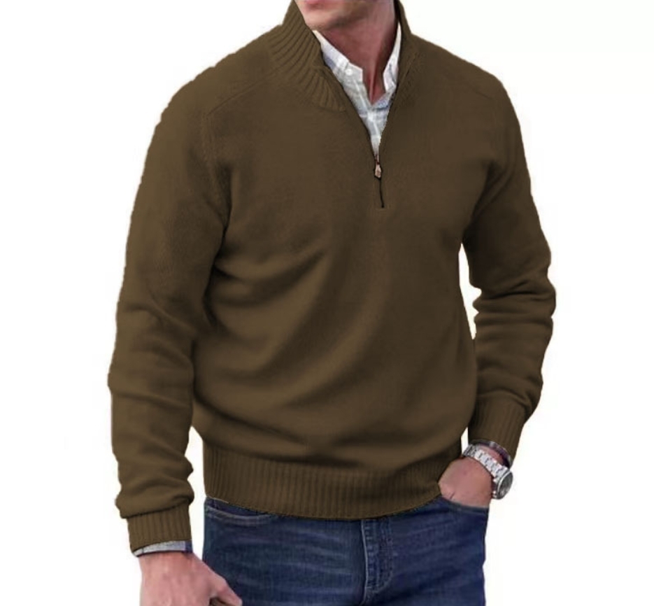 - 秋冬 / ニット メンズ セーター ハーフジップ ブークレ ハイネック タートル ルームウエア プルオーバー メンズニットトップス / コーヒー