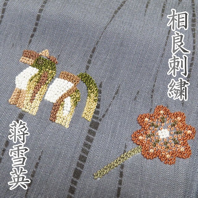 > 【FINAL PRICE】 特選 紬 着物 中古 正絹 袷 カジュアル 工藝美術大使 蒋雪英 相良刺繍 錫色 身丈156cm 裄66cm M きもの北條 A934-9
