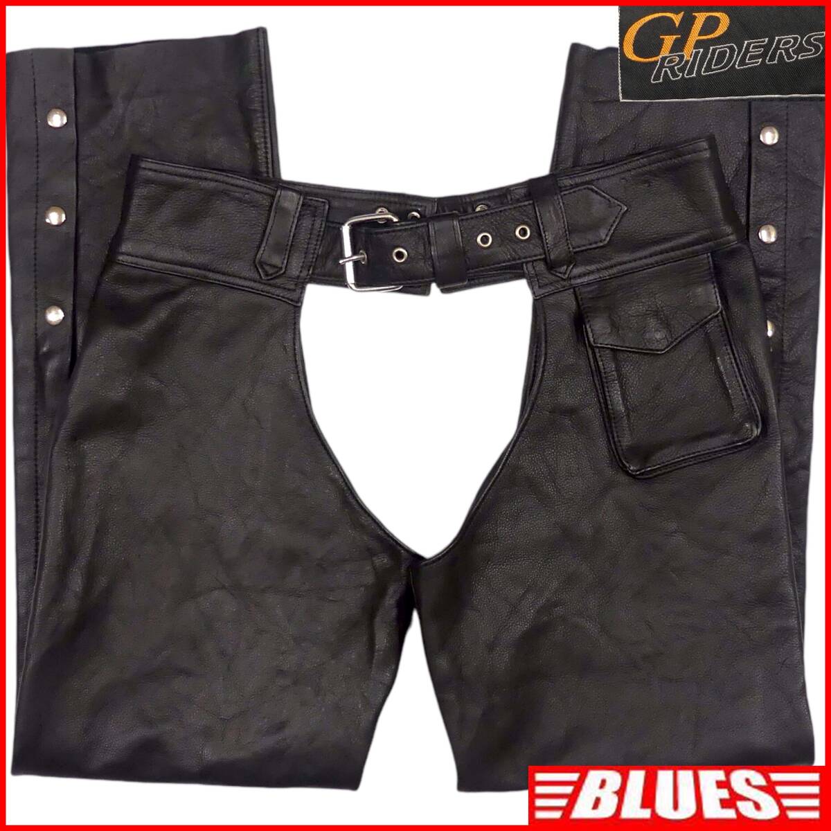 > 即決★GP RIDERS★M レザーチャップス レザーパンツ GPライダース メンズ 黒 本革 ライダースパンツ 本皮 ライディング ツーリング
