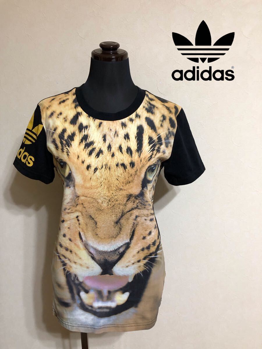 > 【美品】 adidas originals アディダス オリジナルス レオパード クルーネック Tシャツ トップス サイズ XS 半袖 F95449 綿