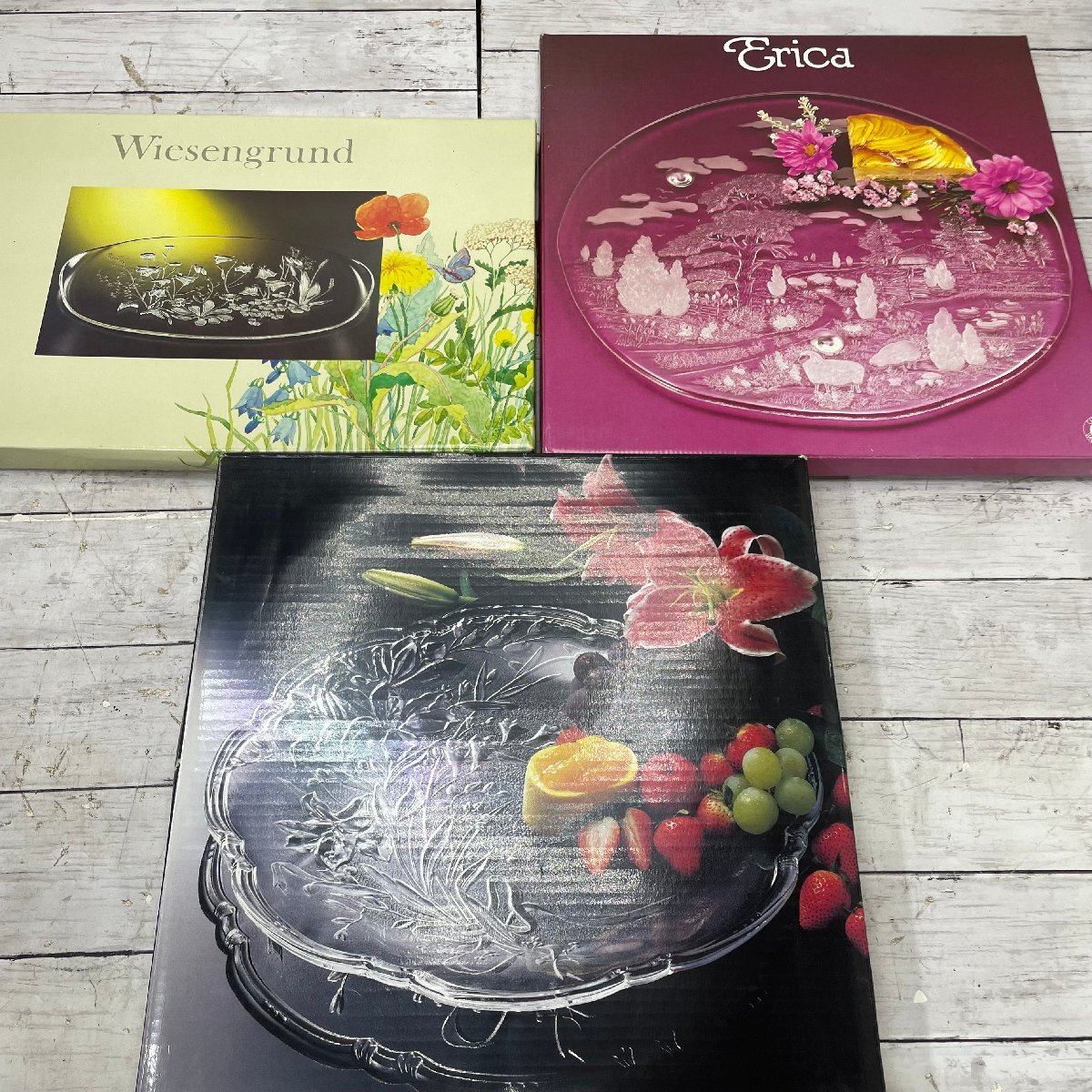 - ♭OG♭ 美品 1円~ ガラス大皿 中古品 ガラス 3点 セット 食器 プレート フルーツ皿 ♭J-231235