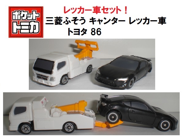 - 2台セット! 三菱ふそう キャンターレッカー車 & トヨタ 86 MITSUBISHI CANTER TOYOTA 86 ポケットトミカ P024 P049 牽引車 TOW TRUCK