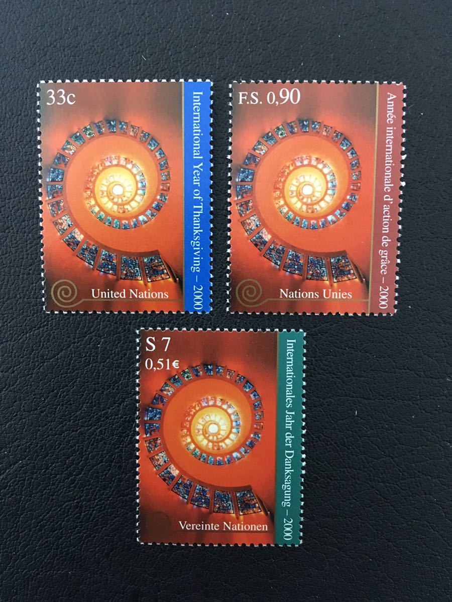 - 国連 2000年 国際感謝年 栄光の窓 盛り上げ印刷 3種 未使用 NH