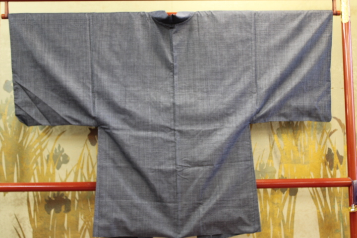 - きもの今昔7619 男の和服 羽織のみ袷額裏付 本場大島紬 藍色100亀甲柄 チェニー羽二重額裏付き 羽織丈92CM