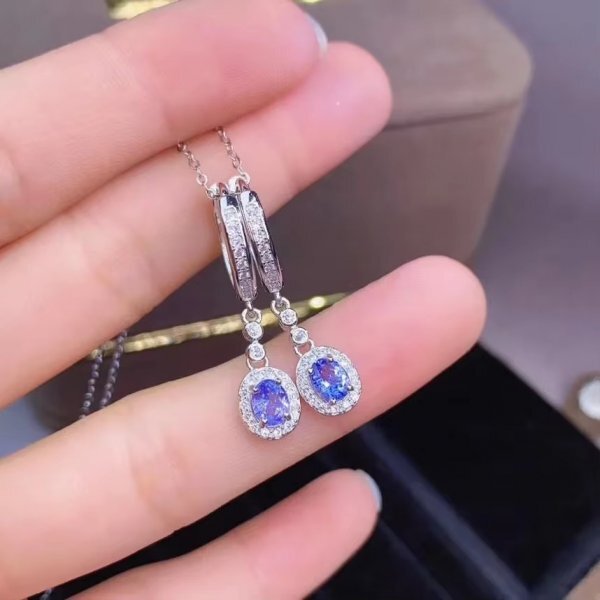 天然タンザナイトピアス、925スターリングシルバー、証明書