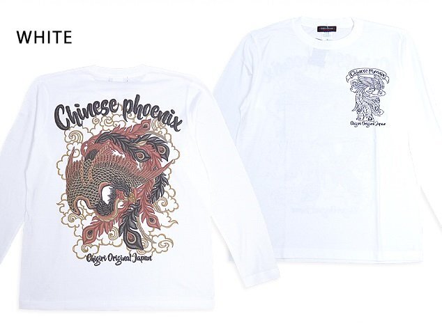 - 鳳凰刺繍風インクジェットロングTシャツ◆CHIGIRI ホワイトXLサイズ CHL60-681 ちぎり チギリ 和柄 長袖