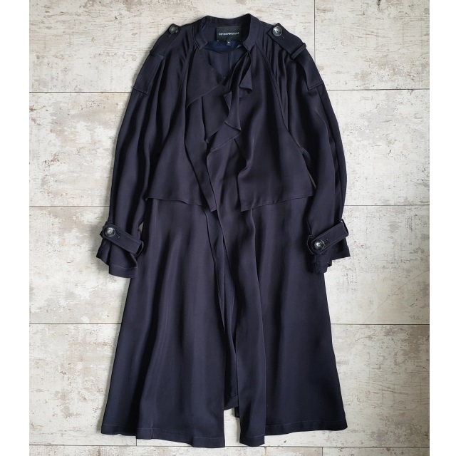 > エンポリオ アルマーニ EMPORIO ARMANI ドレープ ガウン トレンチコート 38 ネイビー
