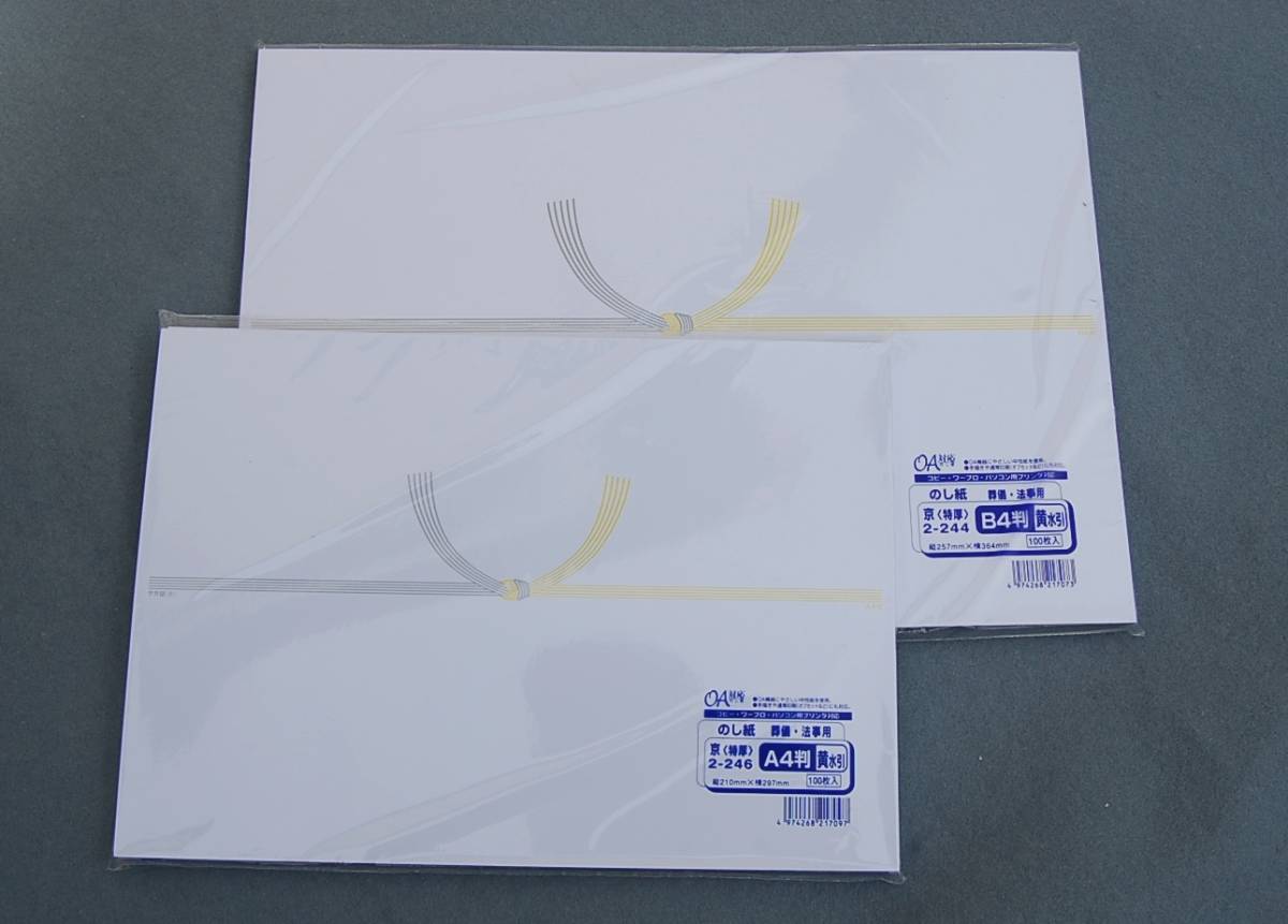 - 冠婚葬祭 熨斗紙 800枚 タカ印:のし紙 葬儀・法事用 黄水引 京 A4判:400枚 2-246 B4判:400枚 2-244